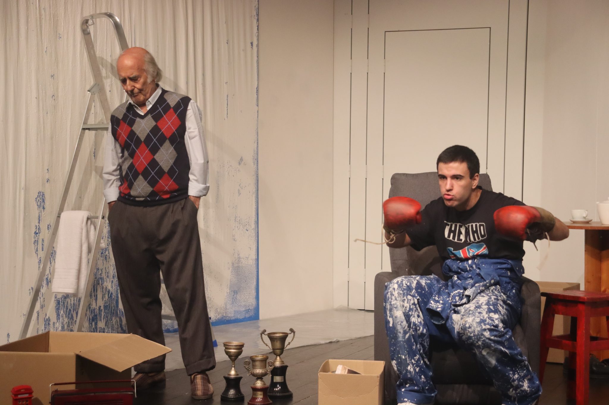 Trata-se de uma peça, baseada num texto do escritor e dramaturgo alemão Lutz Hubner, e encenada por Jorge Silva, que conta a história da relação que se estabelece entre um jovem, a cumprir pena de prisão em serviço comunitário numa ala mais reservada de um lar, onde também está, longe de todos, um idoso, supostamente perigoso, pelo seu passado como pugilista. Por ter, num dia em que foi gozado por um enfermeiro, agredido o mesmo. “Ao longo da história, constata-se que o jovem não era culpado, no crime de roubar uma moto. Mas acaba por cumprir a pena nesse lar de idosos onde encontra o Leo Boxeur, um ex-pugilista, com quem estabelece uma relação. Juntam forças e ideais, que mostram como é possível eliminar barreiras” conta Jorge Silva, que diz ter sido desafiado por Fernando Sena, há cerca de quatro anos, a traduzir em palco um texto “pelo qual criei logo empatia, apesar de não conhecer o autor. Aceitei de imediato”.